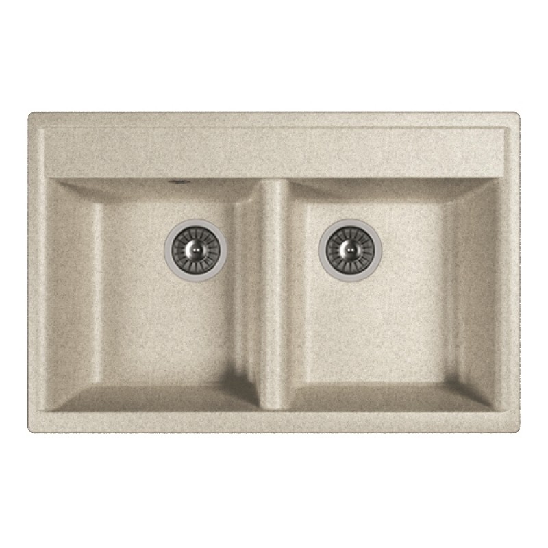 Практичная мойка с двумя полноценными чашами, лаконичный дизайн, дополнительные отверстия под аксессуары.