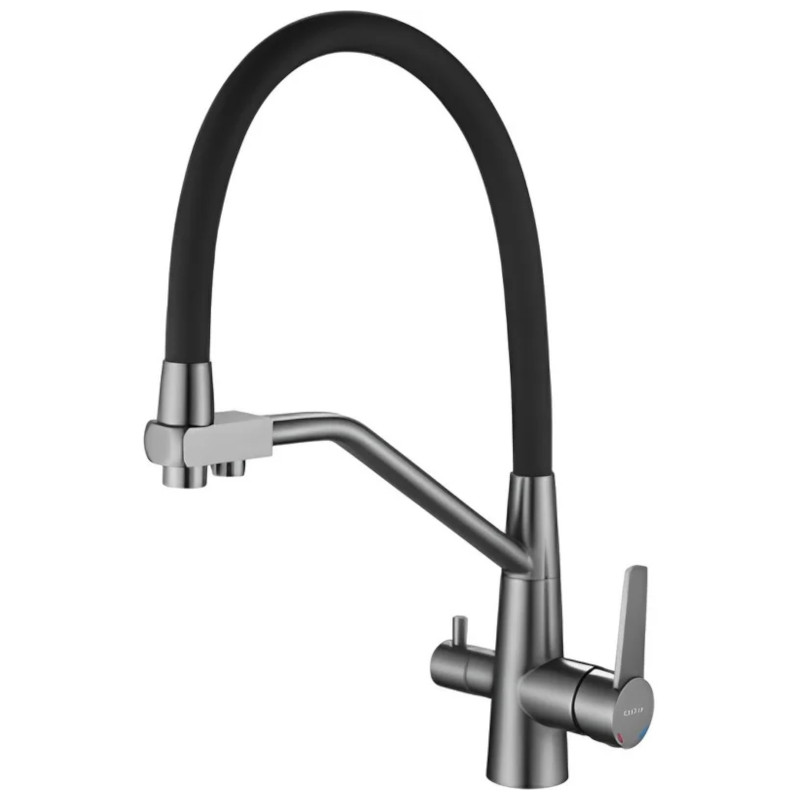 Смеситель для кухни черный с гибким изливом Haiba HB76822-3 произведён из высококачественной латуни, которая характеризуется износостойкостью и сопротивлению высокому давлению.