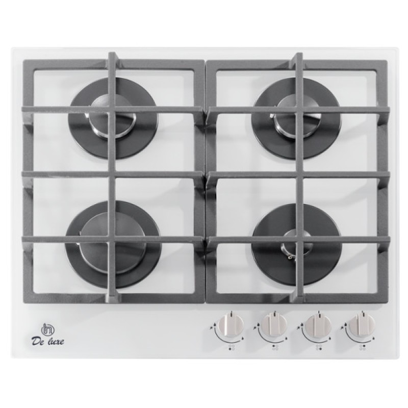 Газовая варочная панель De Luxe GG4_750229F-062 выполненная в белом цвете с 4 конфорками. Поверхность прибора изготовлена из закаленного стекла. Модель оснащена газ-контролем и электроподжигом, встроенным в поворотную ручку.